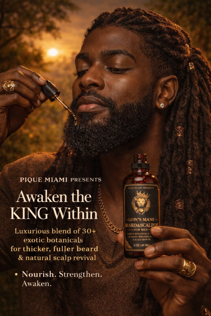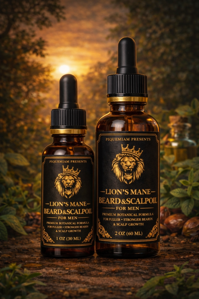 PiqueMiami proudly presents the Lion of Judah Lion’s Mane Beard & Scalp Oil—crafted to awaken strength, restore vitality, and elevate natural growth for both men and women.